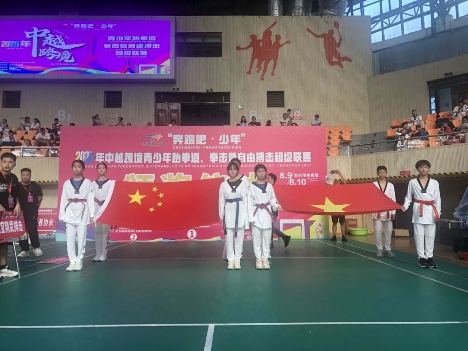 8月9日,2025年东兴市第二届中越跆拳道、拳击暨自由搏击超级联赛在东兴市体育馆激情开赛。本届赛事汇聚了中越两国61支代表队的1300余名青少年选手,他们以武会友,在激烈角逐中展现青春风采,为深化中越体育文化交流谱写新篇章。